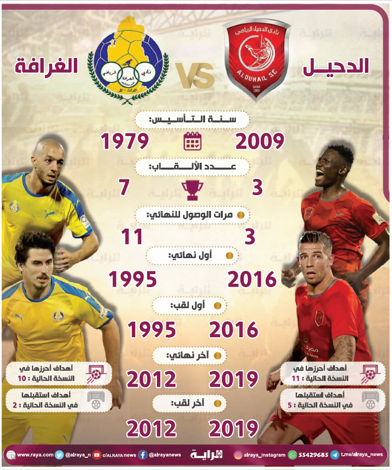 وفي المقابل يدخل الغرافة المباراة آملًا تحقيق اللقب الثامن له في تاريخه والغائب عنه منذ آخر ألقابه الذي حقَّقه عام 2012 بعد فوزه على السد بركلات الترجيح، أما الألقاب الستة الأخرى فحصدها أعوام 1995 و1996 و1997 و1998 و2002 و2009، كما أنه خسر أربعة نهائيات أخرى أعوام 1999 و2006 و2008 و2011.
