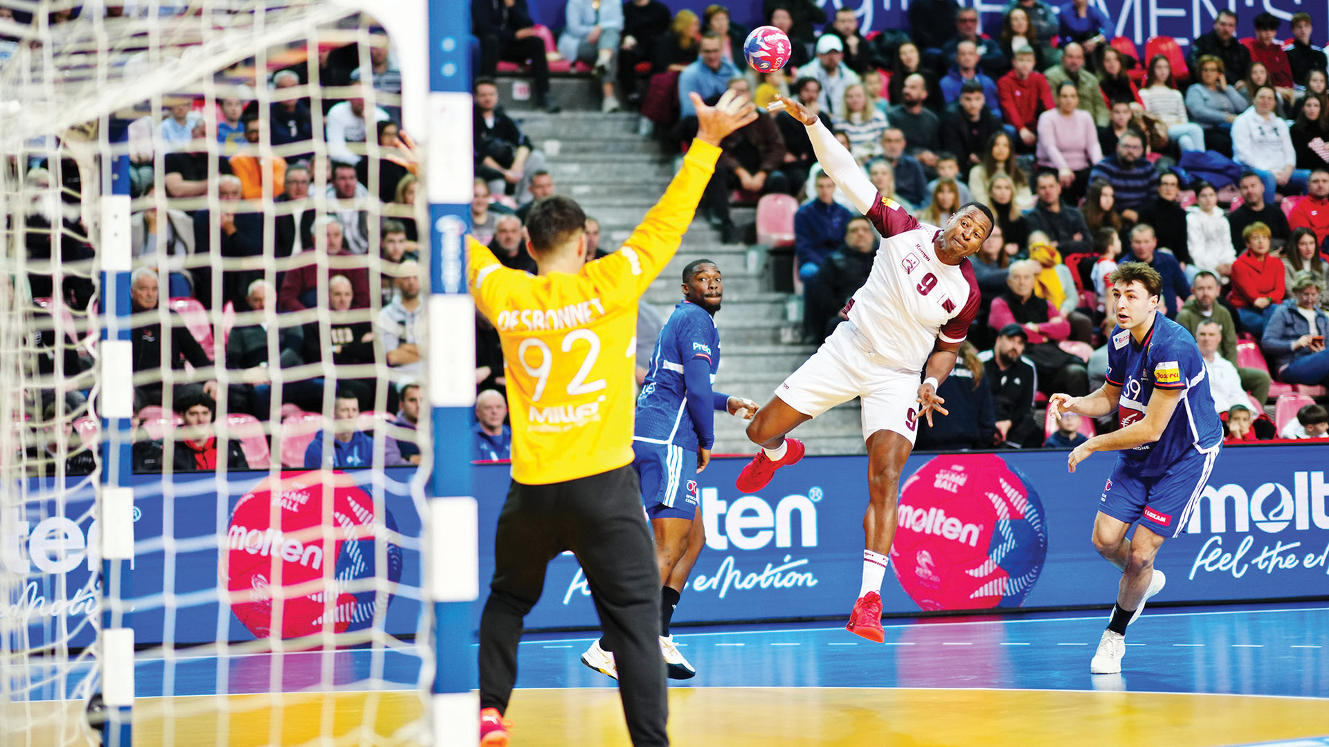 خسر عنابي اليد من المنتخب الفرنسي بنتيجة 37-19 في مباراته الافتتاحية أمس التي أقيمت على صالة زاتيكا في مدينة بوريتش الكرواتية ضمن المجموعة الثالثة من بطولة العالم التاسعة والعشرين التي تستضيفها كرواتيا والدنمرك، النرويج، ودفع العنابي ثمن الأخطاء الكثيرة وعدم استغلال الفرص التي أتيحت له في المباراة ولعبت التفاصيل البسيطة والوقوع في بعض الأخطاء وعدم استغلال الفرص وغياب الدقة والتركيز دورًا حاسمًا في خسارة العنابي. ورغم ذلك قدم منتخبنا أداءً جيدًا أمام واحد من أقوى منتخبات أوروبا والمرشح للمنافسة على لقب البطولة، ورغم خسارة العنابي لضربة البداية تبقى فرصته قائمة في التأهل للدور الرئيسي وكل الاحتمالات مفتوحة في المجموعة ومن المقرر أن يلعب منتخبنا مع النمسا غدًا ثاني مبارياته في البطولة.