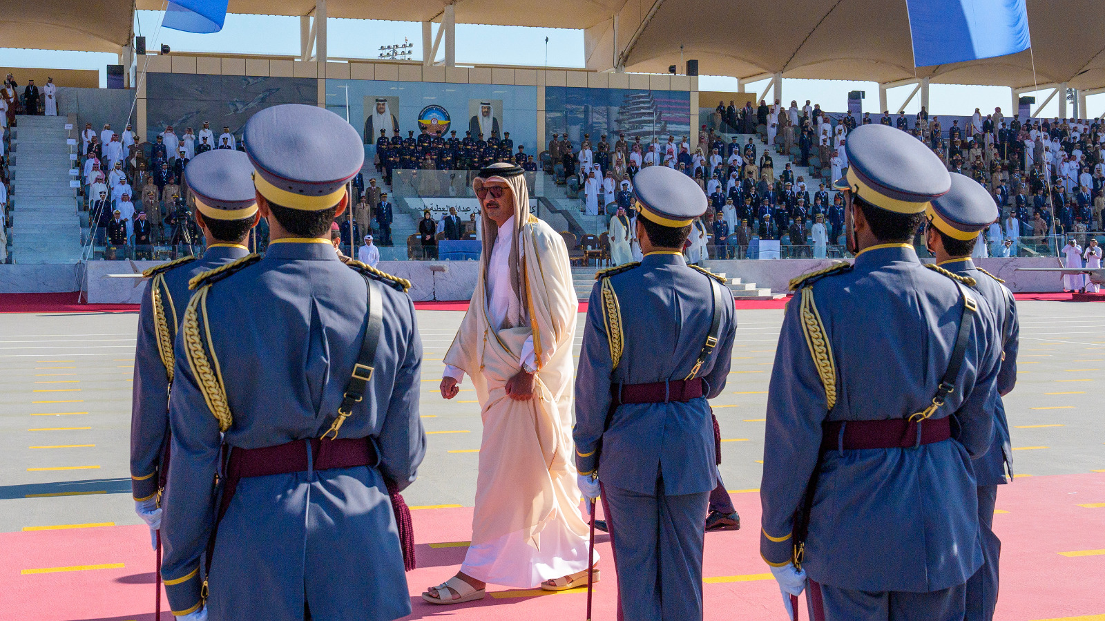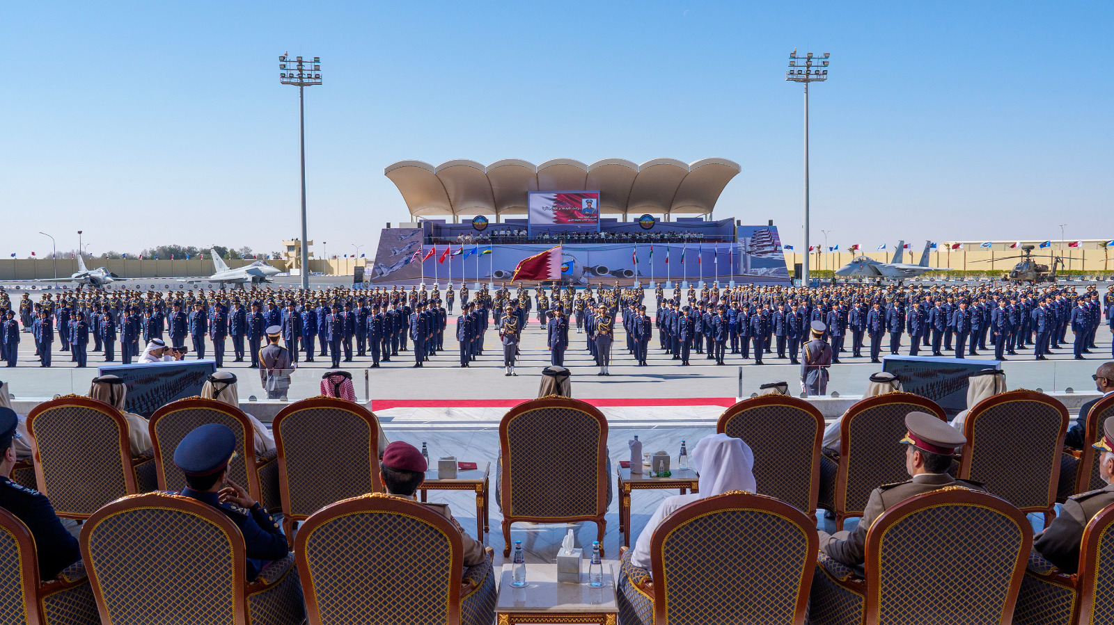 تفضل حضرة صاحب السمو الشيخ تميم بن حمد آل ثاني أمير البلاد المفدى، فشمل برعايته الكريمة، حفل تخريج الدفعة الثانية عشرة من الطلبة المرشحين بكلية الزعيم محمد بن عبدالله العطية الجوية، بمقر الكلية في قاعدة العديد الجوية صباح اليوم.